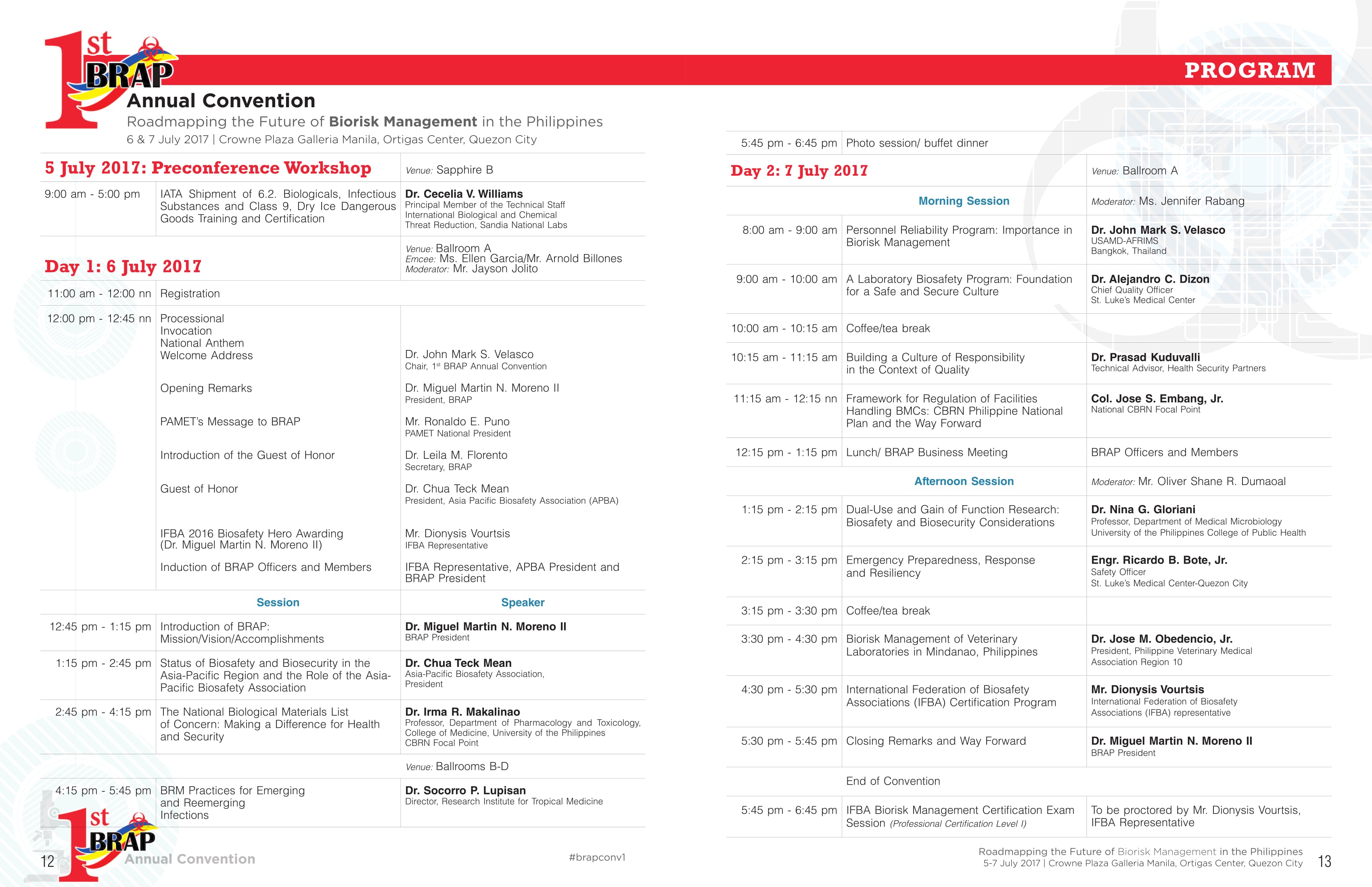 17th APBA Annual Biorisk Conference in conjunction with the 7th BRAP Annual Convention and 5th International Forum