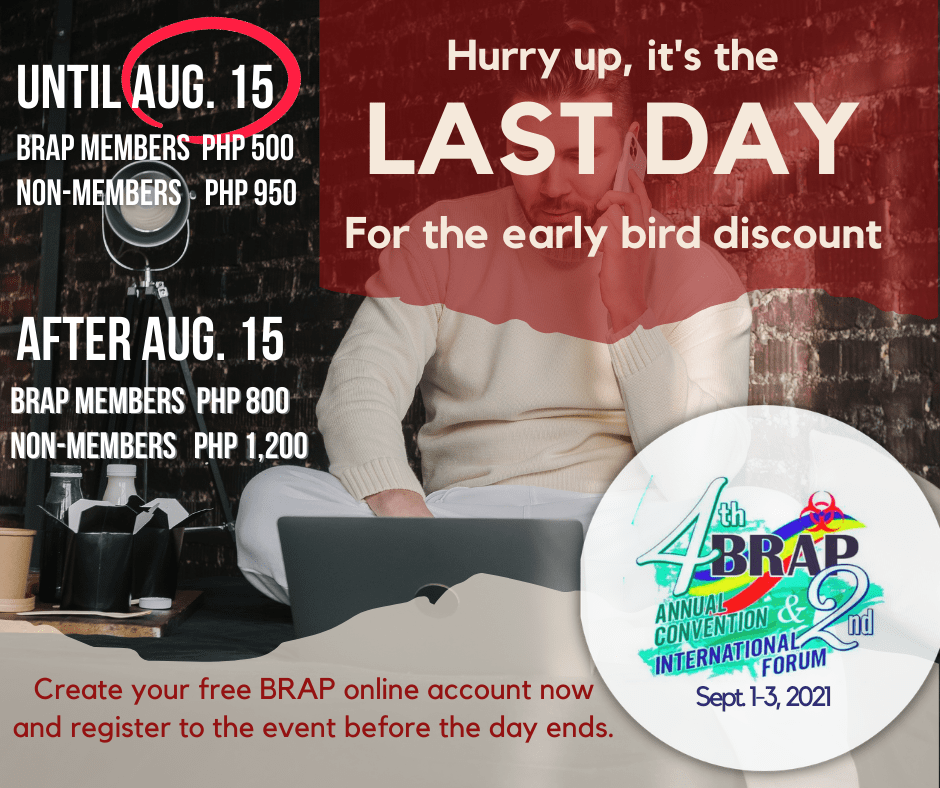 Updated/renewed BRAP members get the lowest registration fee of Php 500.00. Hurry, register before the day ends.