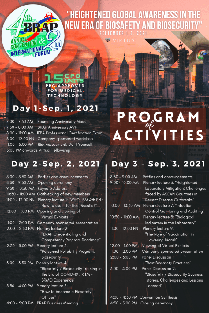 Join the BRAP 4th Annual Convention and learn local and global biosafety and biosecurity perspectives from experts in various fields of practice.