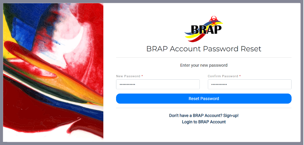 - Click Reset Password. You will be redirected to the BRAP Account Password Reset page.