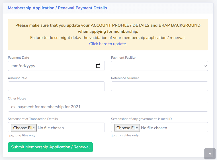 - Accomplish the Membership Application / Renewal Payment Details form.