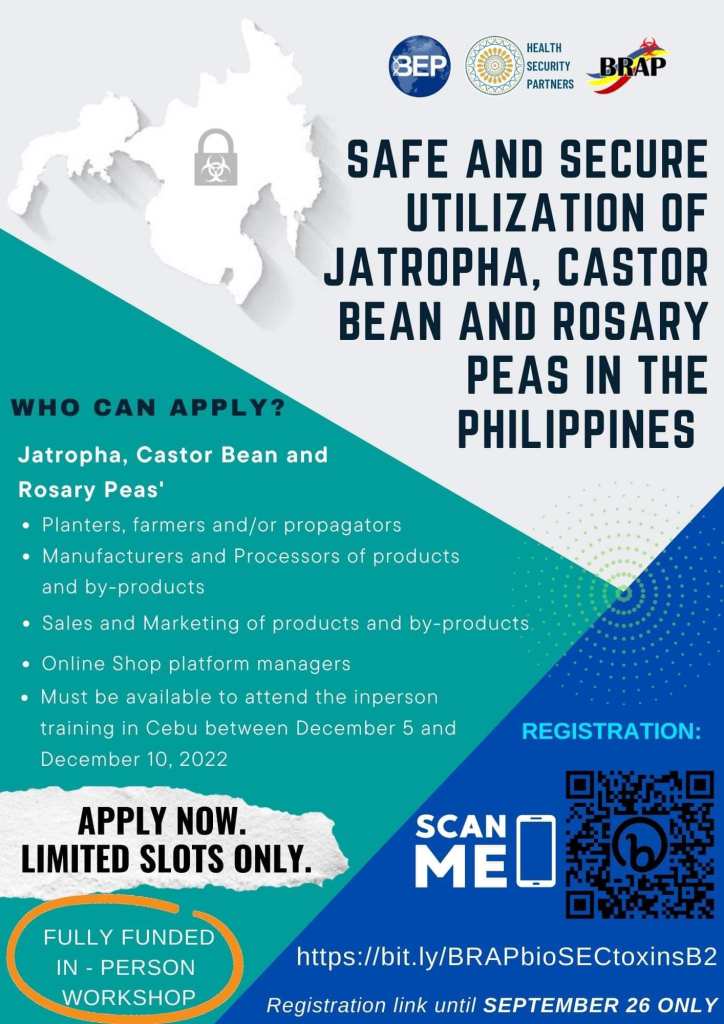 Application ongoing for HSP and BRAP’s Safe and Secure Utilization of Jatropha, Castor Bean and Rosary Peas in the Philippines.