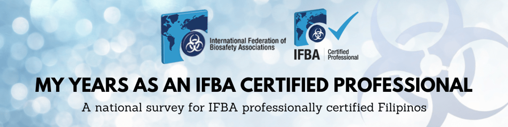 Magandang araw sa mga kasamahan. Taos-pusong inaanyayahan ko kayong magbahagi ng inyong pananaw sa pamamagitan ng pag-sagot sa maikling survey tungkol sa inyong propesyonal na buhay bilang isang IFBA-certified individual sa Pilipinas. Ang inyong feedback ay magtutulong sa amin na mas maunawaan at suportahan ang mga pangangailangan ng ating mga Pilipinong IFBA-certified professionals. Salamat sa paglaan ng oras upang lumahok sa survey na ito.