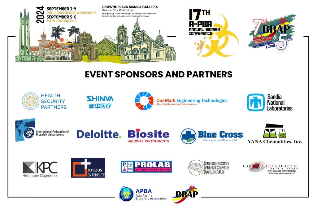 We are pleased to present our event sponsors and partners for the 17th APBA Annual Biorisk Conference in conjunction with the BRAP 7th Annual Convention and 5th International Forum!