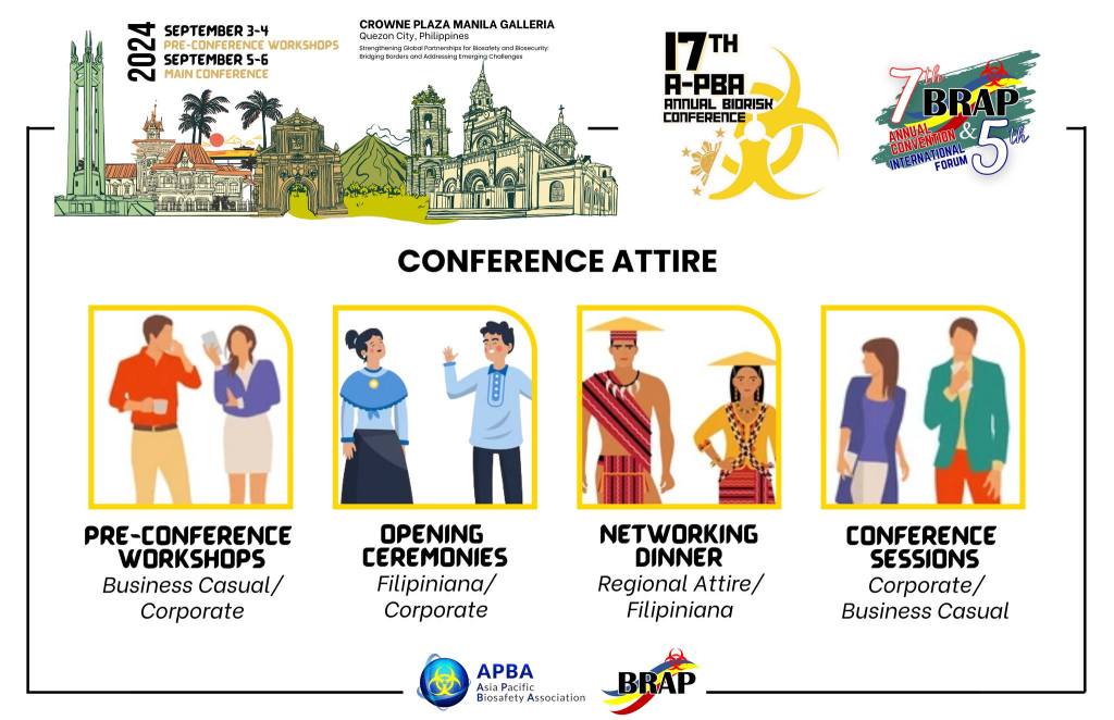 Please be guided on the recommended conference attire for the 17th APBA Annual Biorisk Conference in conjunction with the BRAP 7th Annual Convention and 5th International Forum.